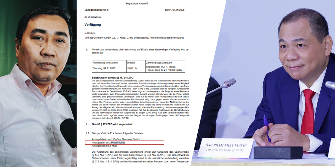 A German court has officially sent a summons to Vietnamese billionair Pham Nhat Vuong to Berlin for the lawsuit against journalist Le Trung Khoa.
