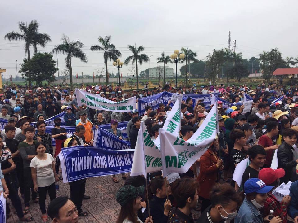 Gần tuần nay người dân các xã ven biển huyện Lộc Hà, Hà Tĩnh liên tiếp biểu tình đòi chính quyền phải đền bù thỏa đáng sau vụ gây thảm họa môi trường làm cá chết từ nhà máy của tập đoàn gang thép Formosa Đài Loan tại Vũng Áng gây ra ở biển Miền Trung.
