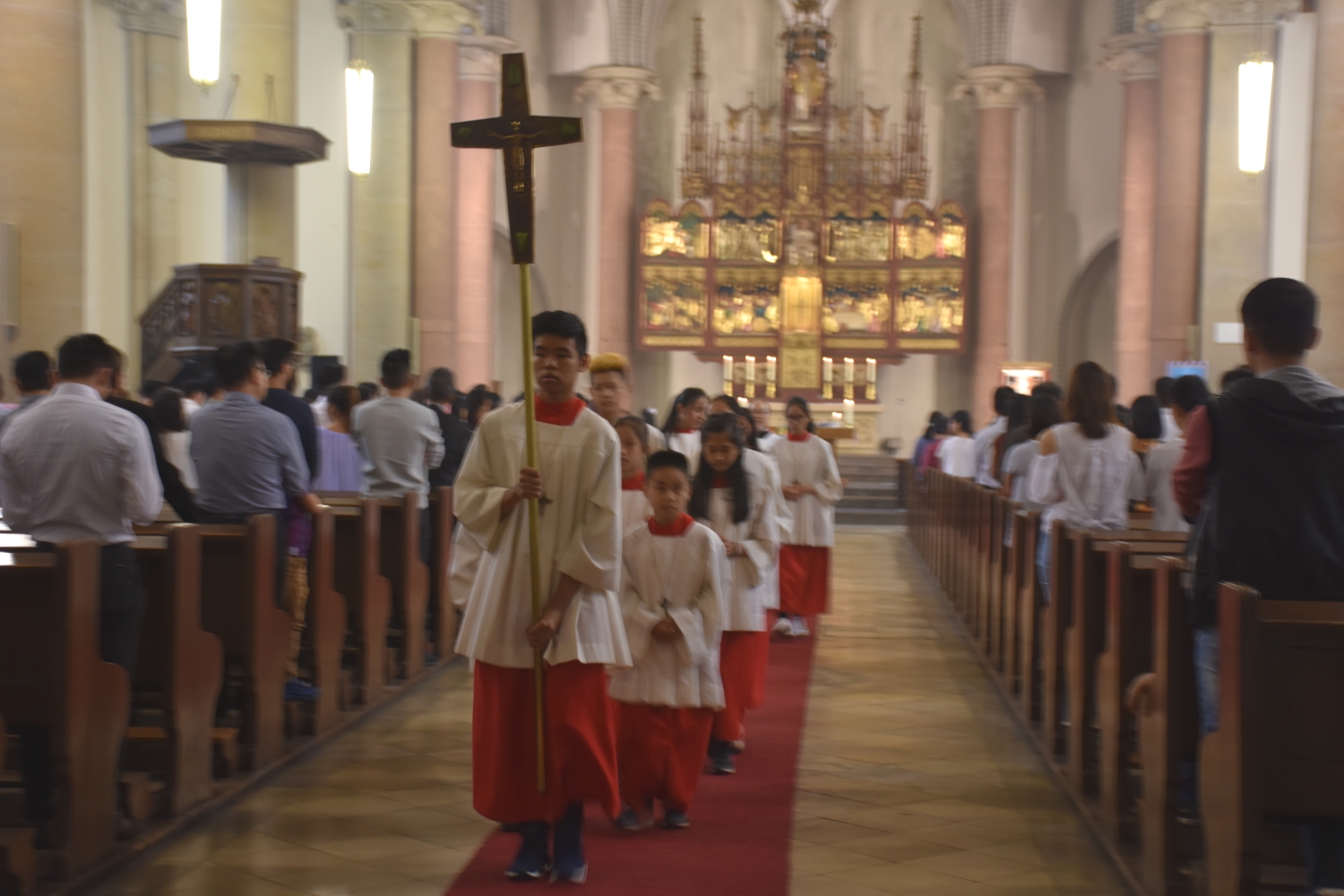 Es scheint ein wichtiges Fest für die 500 Katholiken zu sein, weshalb die Kirche sehr andächtig still ist und ansonsten nur Gebete und Lieder aus dem Gotteslob aus den Mündern der jungen Vietnamesen erklingen.
