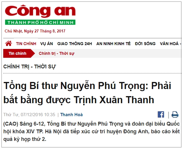 Bản tin báo Công An TP. HCM ngày 07.12.2016