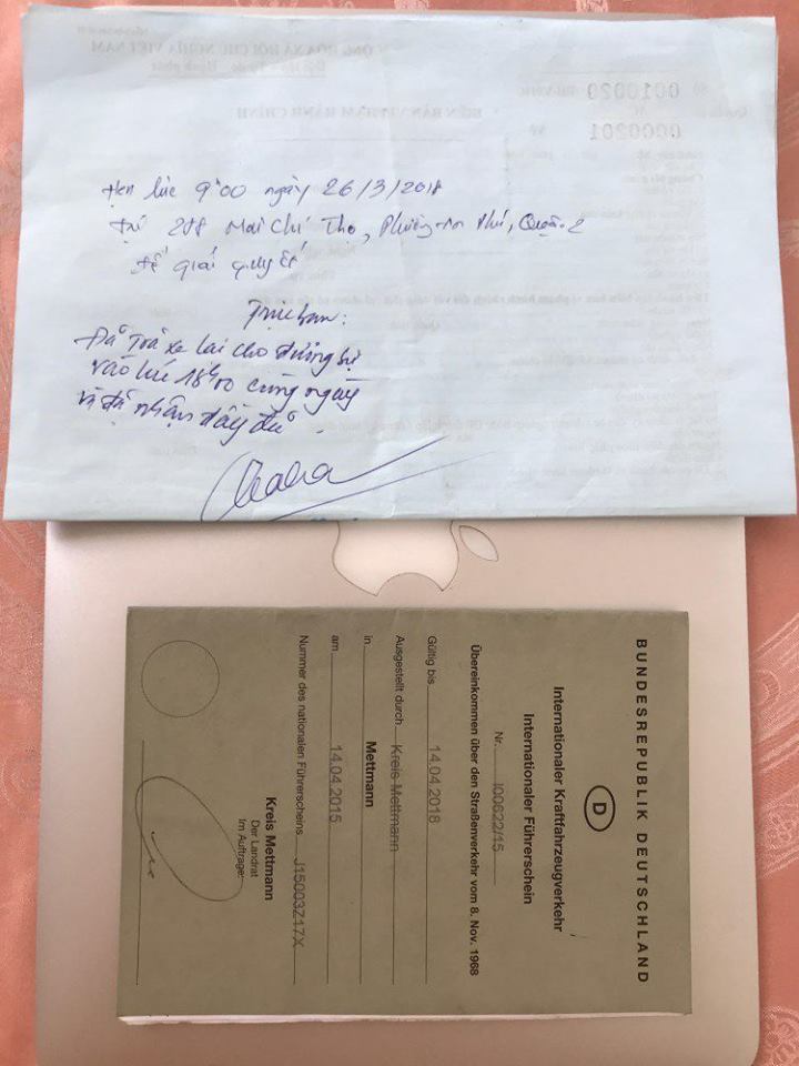 Các giấy tờ, bằng lái xe của ông Vũ Thanh Tùng – Việt kiều Đức bị thu giữ