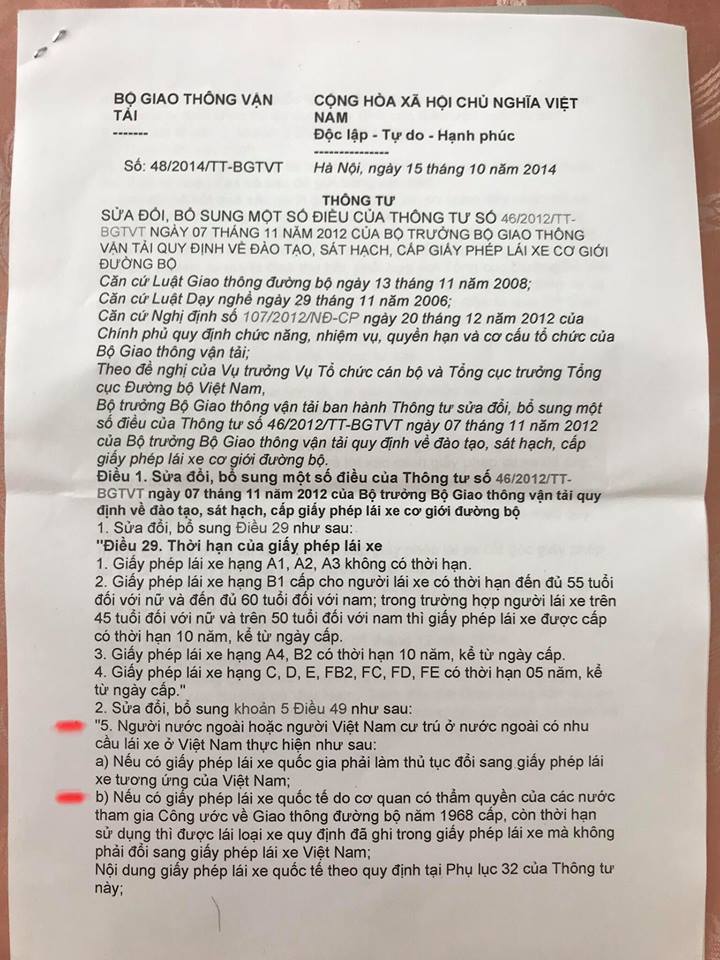 Thông tư hướng dẫn sử dụng bằng lái xe nước ngoài tại Việt Nam