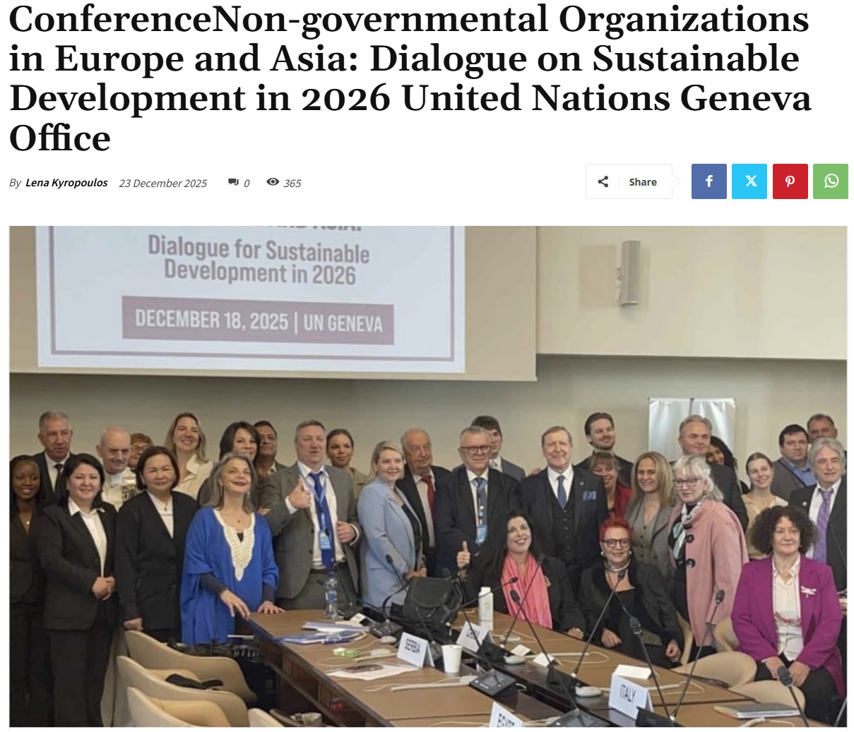 Vào ngày 18 tháng 12 năm 2025, hội nghị “Các tổ chức phi chính phủ của châu Âu và châu Á”: Đối thoại về phát triển bền vững năm 2026” đã được tổ chức tại Trụ sở Liên hợp quốc tại châu Âu ở Geneva, Thụy Sĩ.